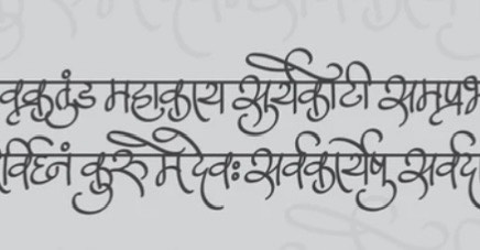 Vector artwork of ancient and auspicious mantra in Sanskrit script saying Vakratunda Mahakaya Suryakoti Samaprabha. Shutterstock.com, 13 March 2023.